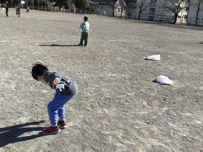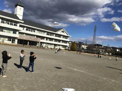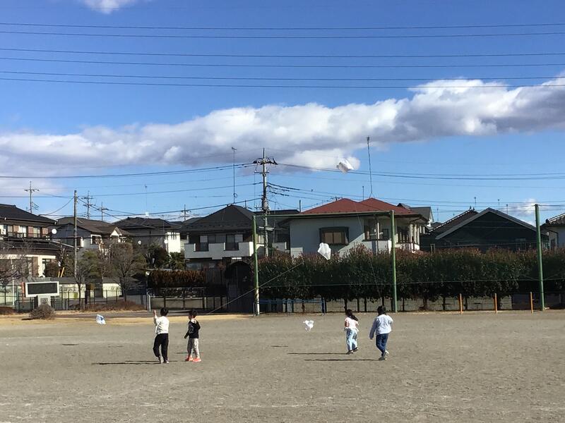 毎年1月の風物詩といってもいいでしょう。1年生たちの凧あげです。