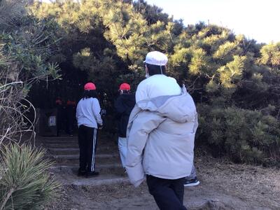 さて、朝と言えば、「散歩」です。おそらく昨日、ナイトハイクで降りてきた海岸でしょう。夜の海の雰囲気とは全く違うことに気付き、自然の不思議さ、奥深さを感じる瞬間です。(だと思います。)