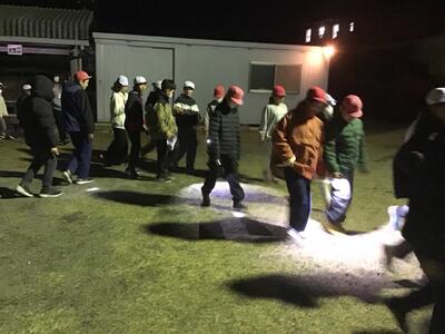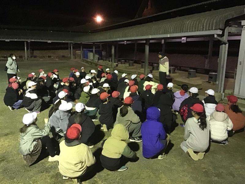 1日目、夕方からのアクティビティ、「ナイトハイク」です。夏ならば、まだ明るい時間ですが、真っ暗ですね。これでこそのナイトハイクです。