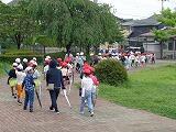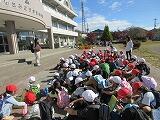 外を見ると1年生が集まっていて、どこかへ出かける様子。