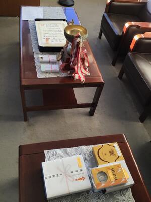 1つは表彰式。ZOOMで各教室をつなぎ行いました。下の写真は、朝の校長室。準備万端ですね。