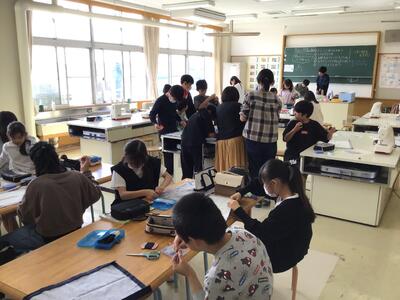 さて、家庭科室に戻ってみると、ミシン作業が終わってちょっとリラックスした雰囲気です。