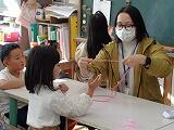 きょうは、ボランティアの方々をお迎えして、1年生の生活科「むかしのあそび」体験が行われました。
