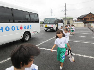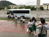 1組さんのときは、さわやかないい天気で歩いて行ったのですが、このところのあいにくの雨、台風も接近しているということで、鹿沼市のスクールバスをお願いしました。急なお願いにも関わらず対応していただき感謝!です。