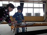 28日(火)に1年生が、地域のボランティア20名あまりから昔の遊びを教えていただきました。コマ回し、はねつき、けん玉など今の子どもたちは全くやったことがない子が多く、苦労していました。でも、とても楽しく遊べました。