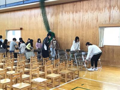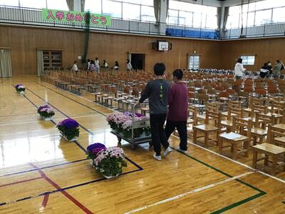 いよいよ明日は、入学式です。今日の6時間目に6年生が準備をしました。式場のセッティングや教室の飾りつけ、周辺の清掃など盛りだくさんの内容でしたが、さすがは、最高学年のみなさんです。元気に前向きに一生懸命取り組んでくれました。