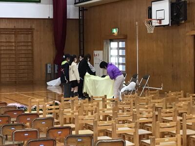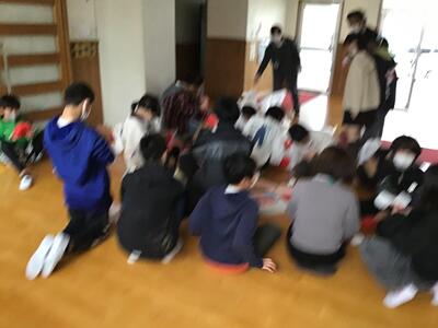 下の写真は、式が終わった後の6年生たちです。担任の先生とミーティングでしょうか。式場の片付けもてきぱきとやってくれました。