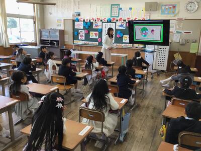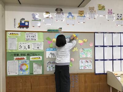 教室の方は、華やかになりました。1年生の教室になりましたね。