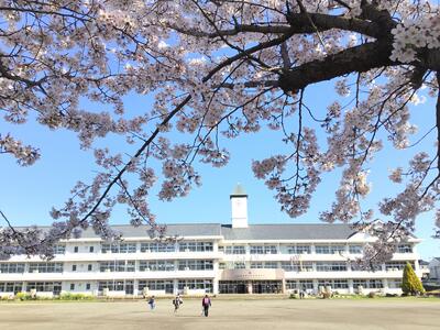 今日は、いよいよ入学式です。新入生のみなさん、保護者、ご家族の皆様、誠におめでとうございます。春の青空も校庭の桜も今日の日を祝うかのようです。