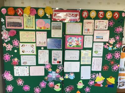 お祝いのメッセージもたくさん届きました。きれいに飾りつけもされています。1年生の保護者の皆さんは、明日をお楽しみに!