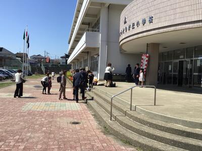 昨日入学式を終えた1年生の記念すべき通常登校1日目ですね。みんな元気に登校しました。自分の靴箱がどこか悩む場面もありましたが、6年生の手も借りて無事教室に入りました。入学式での約束どおり元気に「おはよう」「おはようございます」の声が響きました。