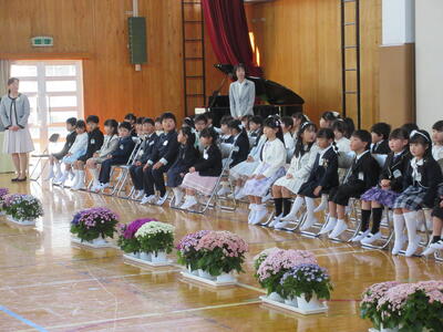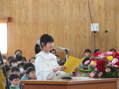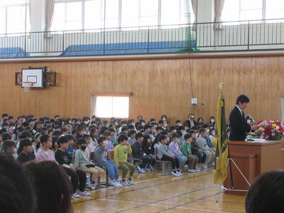 子どもたちには、「上級生は、下級生に憧れられる存在になってください。」「新しい年度が始まる今、なりたい自分の姿をしっかりと描いて、そういう自分になれるようがんばりましょう。」と話しました。