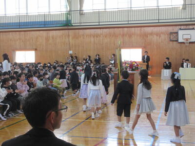 児童代表の歓迎の言葉、さすがの6年生です。実に堂々した態度で、1年生たちをお迎えしました。頼もしいお兄さん、お姉さんの存在をしっかりと感じさせてくれました。