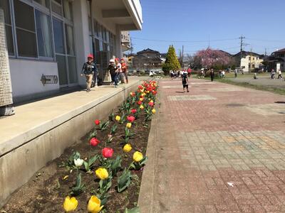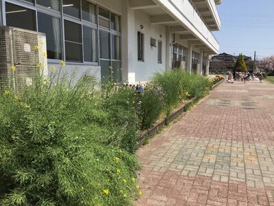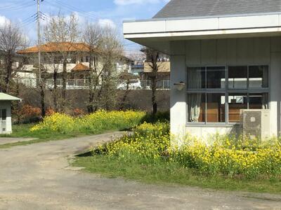 校舎周りは春爛漫、菜の花がいっぱいで柔らかで優しい雰囲気があふれています。