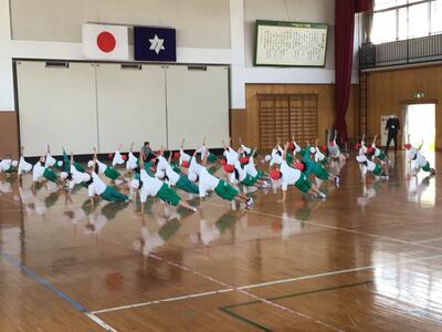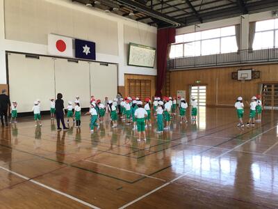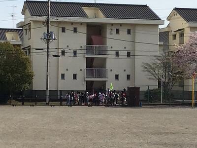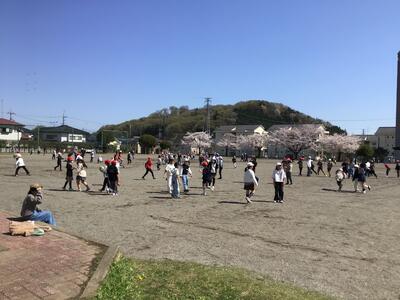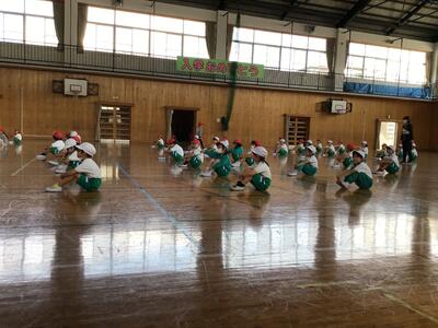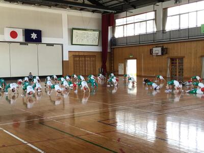 今年度になって初めての体育の授業でしょう。きれいに並んでストレッチのような体操を楽しんできました。学校では、「体ほぐしの運動」と呼んでいるものです。