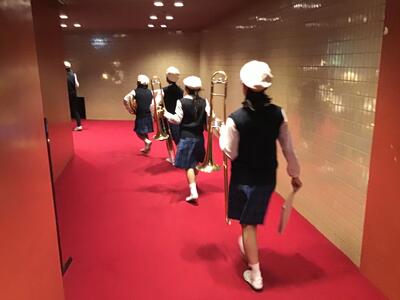 いよいよ音楽会当日です。お昼の時間帯、金管バンド準備中ですね。