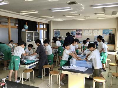 5年生理科では、「仮説や予想をもとに、解決の方法を発想する力」を育成することが大切です。、「流れる水にはどんな働き、力があるのか」を課題に、予想をもとにチームを作り、仮説を立て、自分たちで実験方法を考え確かめていく授業は、まさにドンピシャです。今後に 乞うご期待!
