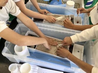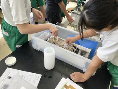 実験です。先日ご紹介した5年生の「流れる水の働き」の授業ですが、