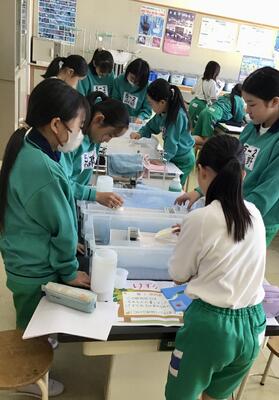「流れる水の働き」の授業のようです。「流れる水」にはパワーがあります。どんな働きがあるのか、グループごとに課題をもって解明していこうとする内容です。