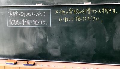 各半ごとに課題を決めて、予想を立て、実験装置を考え、いよいよです。