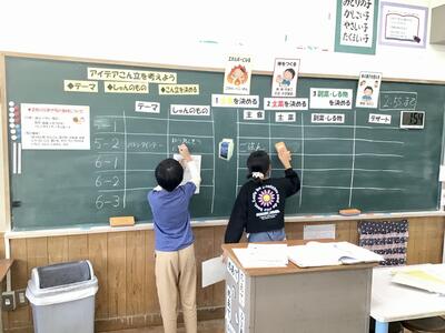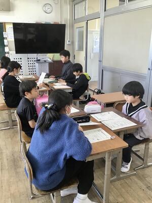 大勢の参観者の目が気になるところですが、子供たちは真剣に考え、話し合ってメモをしながら検討を進めていました。