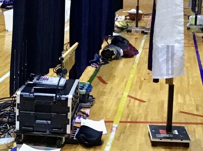 ちょっとだけ後ろ側を。本格的な機材、複雑な舞台装置。こんなボランティアチームってなかなかありませんよ!