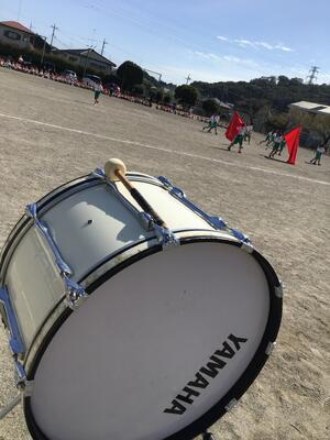 運動会の練習で今日は金管バンドが登場しました。入場の音楽をしっかりと演奏しました。