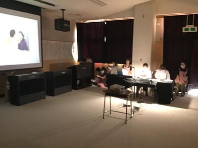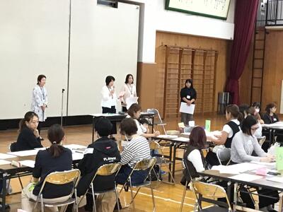 子供たちが検診を受けている間、保護者の皆様は、「親学級プログラム」ということで、鹿沼市家庭教育オピニオンリーダーせせらぎ会の皆さんと過ごしていました。