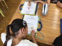 今日は、下書きをグループで読み合って、よいところチェックを行います。