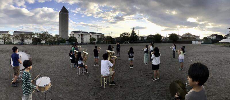 放課後!金管バンドのメンバーが校庭で練習をしていました。「聖者の行進」(だと思います。)