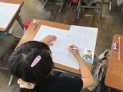 「計算は基本的に前から行う」という計算の決まりの最初の段階です。子供たちは、丁寧にノートを取り一生懸命計算に取り組んでいました。
