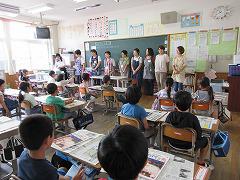 まず、いろいろな種類のリコーダーで曲を演奏していただきました。聴き慣れた曲も披露していただき、リコーダーに合わせて一緒に歌って楽しみました。その後、タンギングや息遣い、運指の仕方などを実演を交えて教えていただきました。この教室をとおして、子供たちはリコーダーに関心をもち、今後の音楽の授業を楽しみにしてくれたのではないでしょうか。