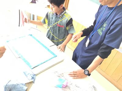 子供たちのに下絵のこつや掘り方などを教えていただきました。