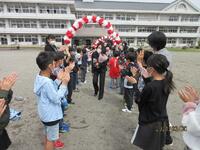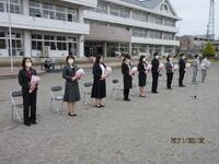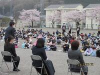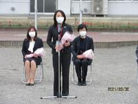 校庭で離任式を行いました。子供たちが、校長先生をはじめ10名の離任される先生方にお礼の言葉をかけてくれました。また、校庭の桜も満開となり、お世話になった先生方を見守っていました。