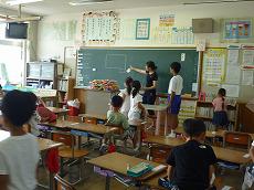 1年生の学級に入って、先生の補助をしたり、休み時間に子供たちと一緒に遊んだりしてくれています。