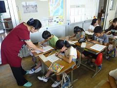 4年生が総合的な学習の時間「福祉 はじめの一歩」で点訳教室を行いました。点訳グループの5名の講師の方々に御指導いただきながら、五十音の表し方などを習いました。最後には自分の名前を点字で表し、しおりを完成させることができました。どの児童も真剣に取り組み、点訳への関心が高まりました。