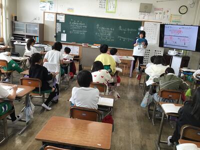 黒板と大型モニターとを駆使して授業が進みます。