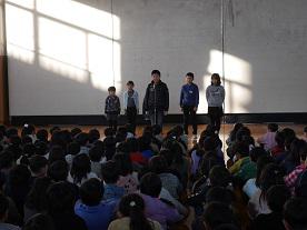 子どもたちがそれぞれ感謝の手紙を朗読し、花束と低・中・高ブロックごとの出し物(歌や合奏)のプレゼントをしました。その後、ボランティアさん達にはランチルームで情報交換をしながら、給食を食べていただき、解散となりました。