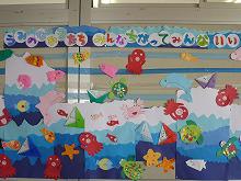 「うみのなかまたち みんなちがってみんないい」と書かれたタイトルの下には、海の中を気持ちよさそうに泳ぐ海の仲間たちがたくさん飾られていました。