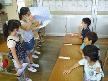 熱中症対策として、手提げバックやリュックなどでの登下校も可とし、帽子の着用や汗ふき用ハンカチの携帯など、それぞれの児童がしっかりと対策をとっていました。