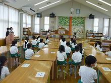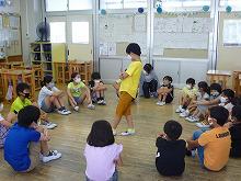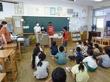 フリータイムにKLVの皆さんがお話し会をしてくださいました。ソーシャルディスタンスを保つために、1年1組を中心にお話を聞かせていただきました。