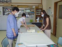 ミーティングルームでは、教材作成ボランティアの皆さんが廊下の掲示物「今月の詩」を作ってくださっていました。毎週金曜日の午前中に来てくださいます。国語や道徳の指導用教材も作っていただいているので、とてもありがたいです。