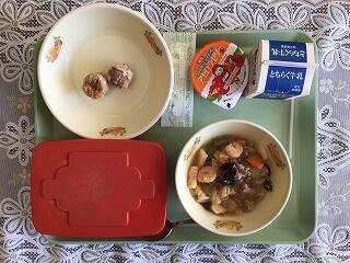 東中学校のアイデア献立でした。彩りや季節感を考えたメニューで、きんぴらも豚汁も栄養満点でおいしくいただきました。