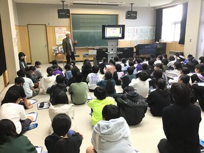 6年生1組、3組は、すでに行った、北海道、八雲市の中学3年生との交流授業です。(11月11日に記事になっています。) 11月11日にジャンプ