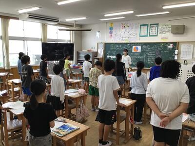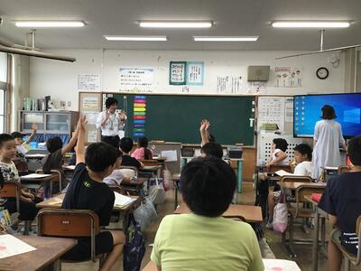 子供たちは、うなづいたり手を挙げたりしながら聞いていました。