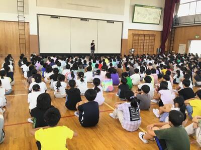 その後、全校児童は体育館に集まり、講話を聴きました。