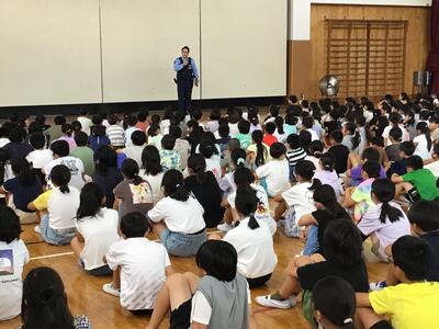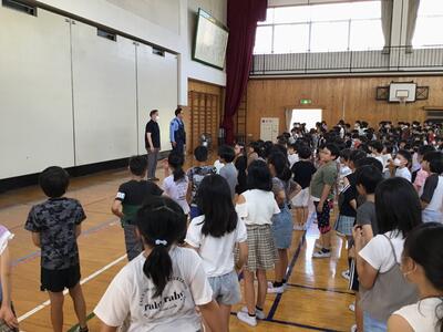 終業式の後に、児童指導主任から夏休みの生活についてお話がありました。