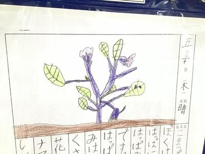 野菜を育てることに関心のある皆様は、このスケッチ、ミニトマトとナスですが、植物のつくりを結構、的確に観察していることに気付きますね。正しく書く(描く)には、正しい観察眼も必要でしょう。
