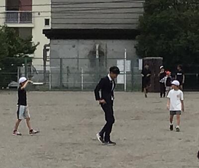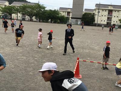 体育委員会企画の「逃走中」でした。ハンター役に加わった先生方!大変お疲れ様でした。ハンター姿、様になっていましたよ。