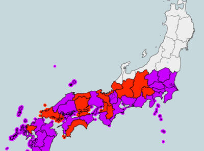 栃木県も紫色です。熱中症警戒アラートが出ています。